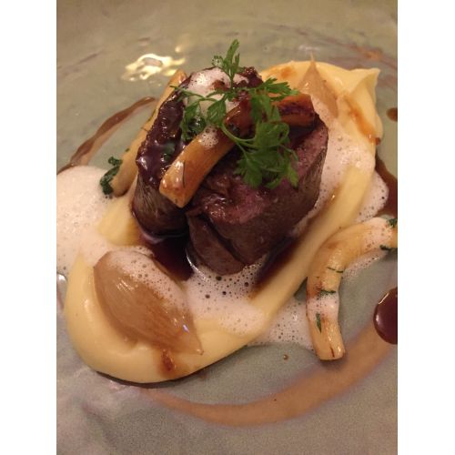 Der Hauptgang zum XO war perfekt zubereiteter Eifler Rehrücken mit Quatre Èpice Jus von kandierter Orange, Pastinake und Perlzwiebel.