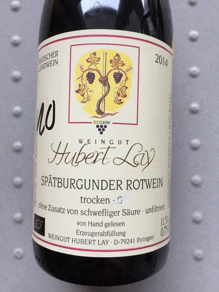 Naturwein – Hubert Lay Spätburgunder Rotwein 2014, trocken – S, Baden