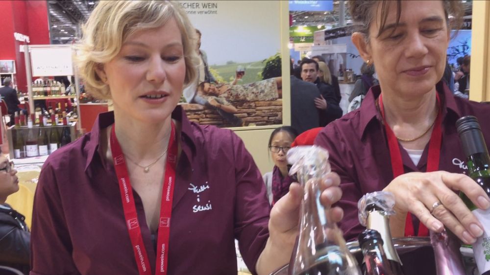 Bei der Verkostung auf dem ProWein-Stand vom badischen Weingut Kiefer.