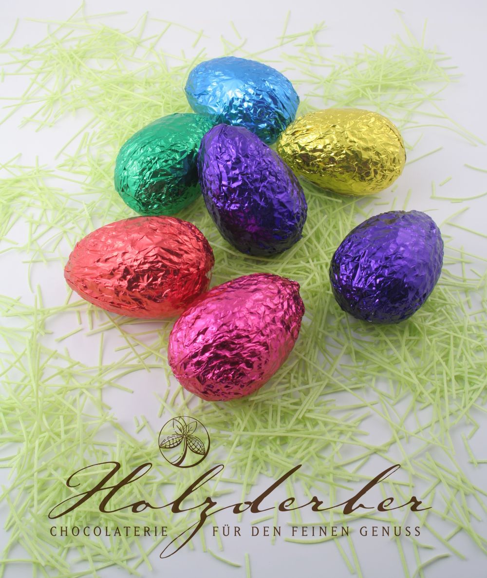 Die Chocolaterie Holzderber fertigt dieses Produkt seit Jahrzehnten in ihrem Familienbetrieb. Knuspriger Puffreis wird mit hochwertiger Edel- Vollmilch- Schokolade vermischt und in Handarbeit zum Ei weiterverarbeitet. Farbenfroh leuchten sie aus jedem Osternest. Die Eier sind so nicht nur lecker, sondern auch ein echter Hingucker.