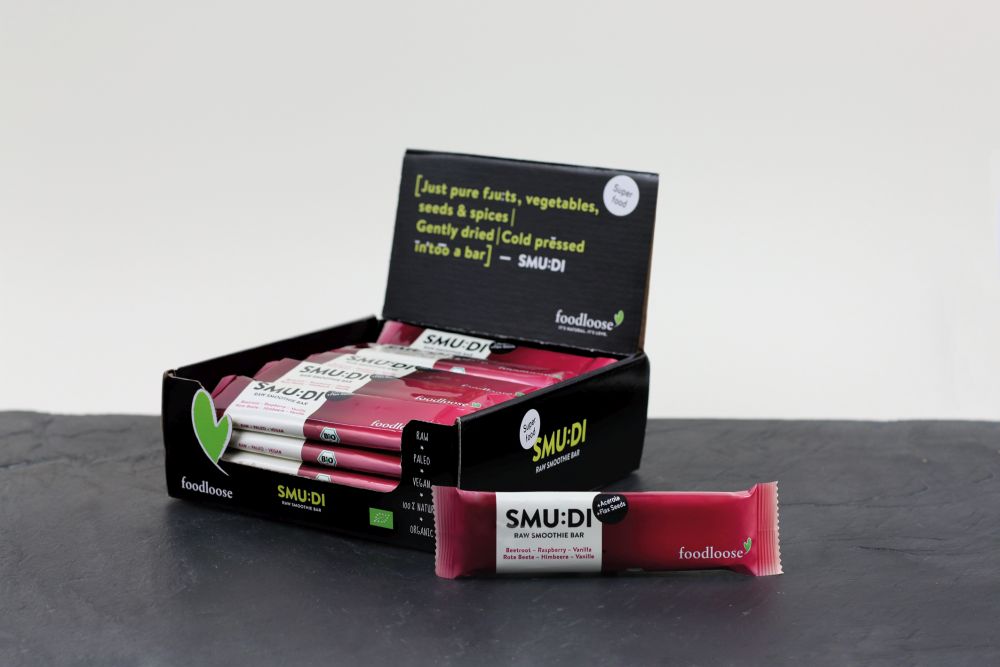 „Mittlerweile findet man Superfoods fast überall. Doch was viele nicht wissen: Bei den meisten Produkten aus dem Supermarktregal werden die Zutaten ultrahocherhitzt, ein Vorgang, bei dem wertvolle Vitamine und Nährstoffe verloren gehen. Das hat uns zu der Rezeptur unserer SMU:DIs inspiriert – ein Rohkost-Riegel aus besten Zutaten, die nur schonend getrocknet werden.“