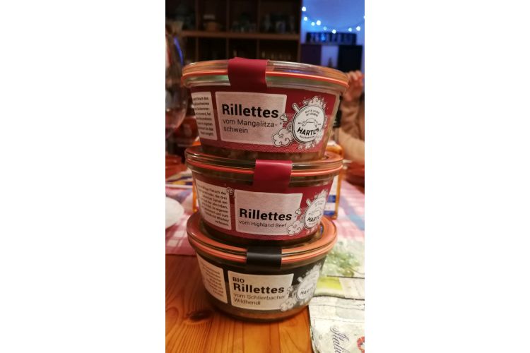 Die drei köstlichen Rilletes vom Linzer Feinkost-Metzger Hartl gibt es jetzt im Sortiment des Online-Shops von Lukullium.