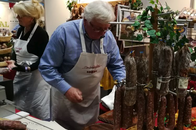 Unser Favorit in der Verkostung am Stand: Die Ahle Worscht vom Bunten Bentheimer Schwein!