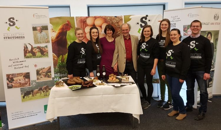 Der Bioland-Betrieb Strotdrees aus dem westfälischen Harsewinkel wurde am letzten Donnerstag mit dem Bundespreis Ökolandbau ausgezeichnet. Der Preis wird seit 2001 im Rahmen der Internationalen Grünen Woche in Berlin an besonders erfolgreiche und engagierte Biolandwirte verliehen. „Es ist großartig, welche Vielfalt Familie Strotdrees auf ihrem Betrieb geschaffen hat. In dem Hof stecken sehr viel Zeit, Engagement und Herzblut, das spürt man und deshalb ist die Auszeichnung mit dem Bundespreis Ökolandbau mehr als verdient“, gratuliert Bioland-Präsident Jan Plagge der Bioland-Vizepräsidentin und ihrer Familie.