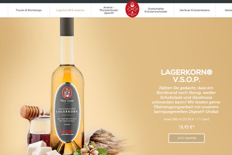 Die Münsterländer Spiritiuosenmanufaktur Sasse bietet eine große Vielfalt an Spezialitäten an. Vom Grafschafter Kräuterwacholder, dem Gerlever Kräuterelexier bis hin zu den Lagerkornspezialitäten. Im Sommer punktet der Anbieter mit seinem Münsterländer Apéritif Amérie mit Himbeeren.