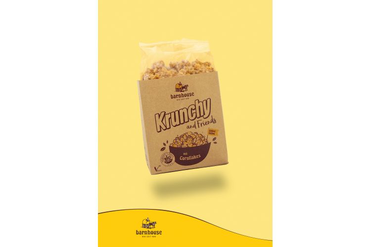 Der Mühldorfer Biopionier Barnhouse zeigt auf der Biofach 2018 in Nürnberg seine neueste Knuspermüsli-Kreation Krunchy and Friends. Der Clou: Das Hafer-Krunchy wird mit Cornflakes verbacken. Die knusprigen Cluster sehen durch die leuchtenden, goldgelben Flakes nicht nur besonders appetitlich aus, sondern weisen eine feine Mais-Note auf. Der Hafer kommt zu 100% von den regionalen Barnhouse-Partnerlandwirten. Das Produkt ist in auffälliger Verpackung als sommerliche Limited Edition nur für kurze Zeit ab 1. Mai 2018 erhältlich.
