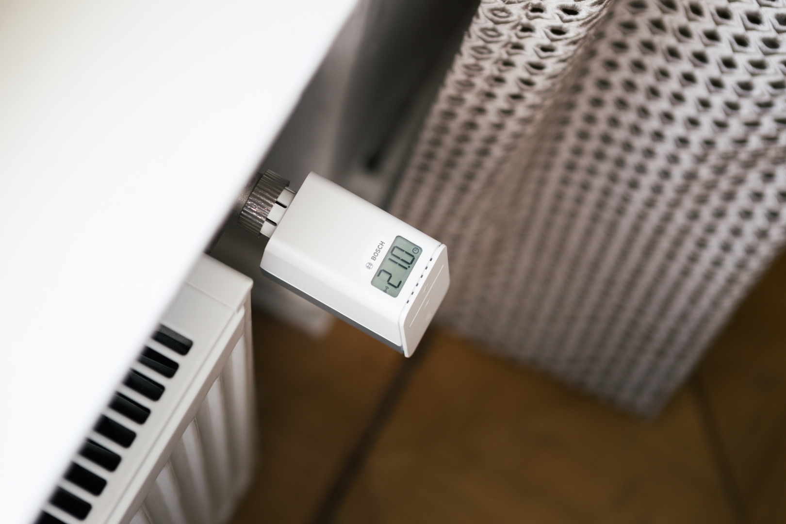 Der Fensterkontakt und der Heizkörperthermostat im Einsatz (Foto: Bosch)