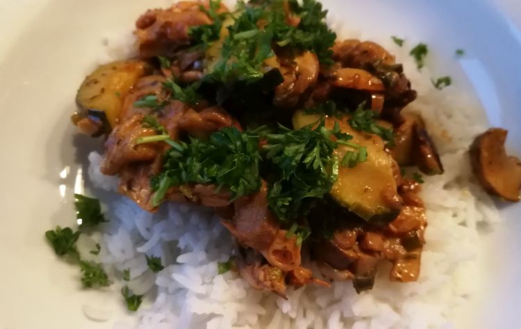 Wir haben zwei Varianten zubereitet: Eine Variante nur mit etwas Frühlingszwiebeln und Knoblauch und einer bunten Kräutermischung sowie etwas Sojasahne. Die zweite Version beinhaltete Zucchini und frische Wiesenchampignons und ebenso eine asiatisch angehauchte Gewürzmischung und Sojasahne. Uns erinnerte die Textur an Artischocken. Am Gaumen ist der Geschmack die junge Frucht sehr dezent mit einer ganz leichten Süße.