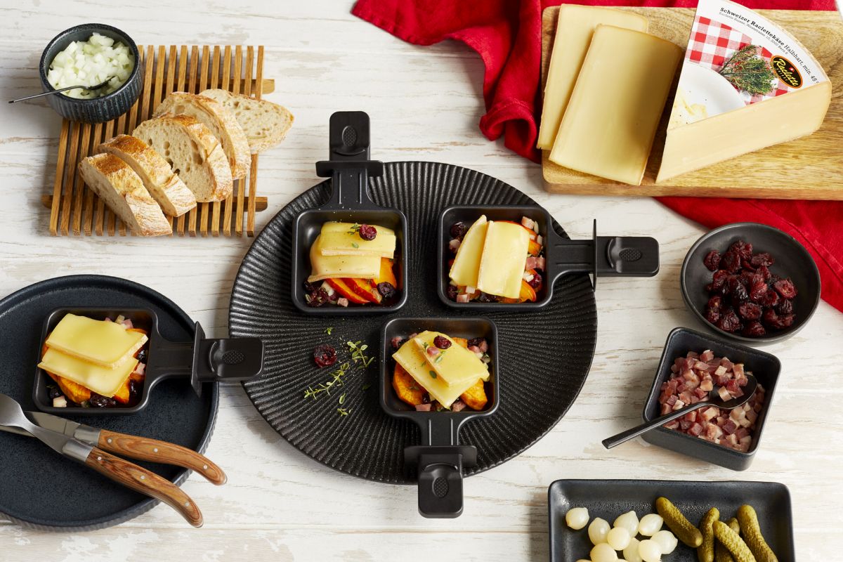 Winterzeit ist Raclette-Zeit: Endlich heißt es wieder auf die Pfännchen, fertig, los! Dieses Rezept für ein köstliches Raclette Suisse mit Kürbis und Cranberries bringt Familie und Freunde an einen Tisch. Raclette Suisse blickt auf eine lange Tradition zurück: Der Legende nach hat sich bereits Wilhelm Tell „Bratchäs“, wie Raclette damals noch genannt wurde, schmecken lassen. Damals wurde ein größeres Stück vom Käselaib direkt am offenen Feuer erwärmt und der duftende geschmolzene Käse auf einen Teller gestreift. Vom französischen „racler“ für abschaben leitet sich auch der Name „Raclette“ ab. Gut zu wissen: Die Rinde von Raclette Suisse darf übrigens mitverzehrt werden, da seine Oberfläche nicht mit Konservierungsstoffen behandelt wird.