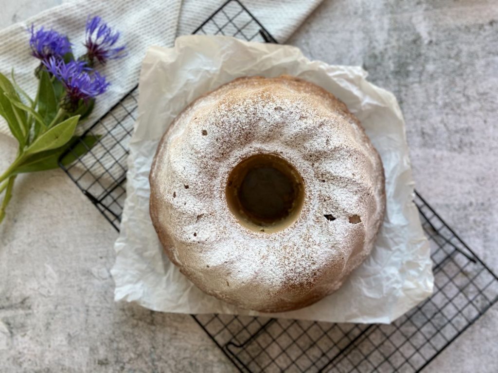 Den Backofen auf 175 °C (Ober-Unterhitze) vorheizen. Den Gugelhupf auf der untersten Schiene 10 Minuten backen, danach die Backtemperatur auf 150 °C reduzieren und weitere 45-50 Minuten backen. Wird die Oberfläche zu dunkel, mit einem Stück Backpapier abdecken. Den fertig gebackenen Gugelhupf nach Belieben mit Puderzucker bestreuen.