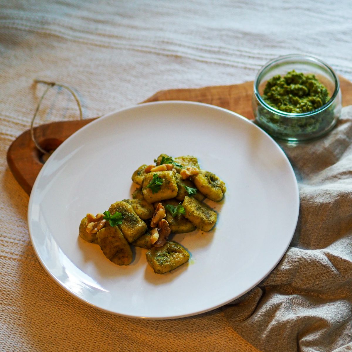 Kein Wunder, dass hier auch italienisch gekocht wird: Gnocchi mit Bärlauchpesto zum Beispiel. Für die Gnocchi wurden Weideeier und für das Bärlauchpesto Rapsgold von MaMas’s Unstruttaler aus der Region verwendet.