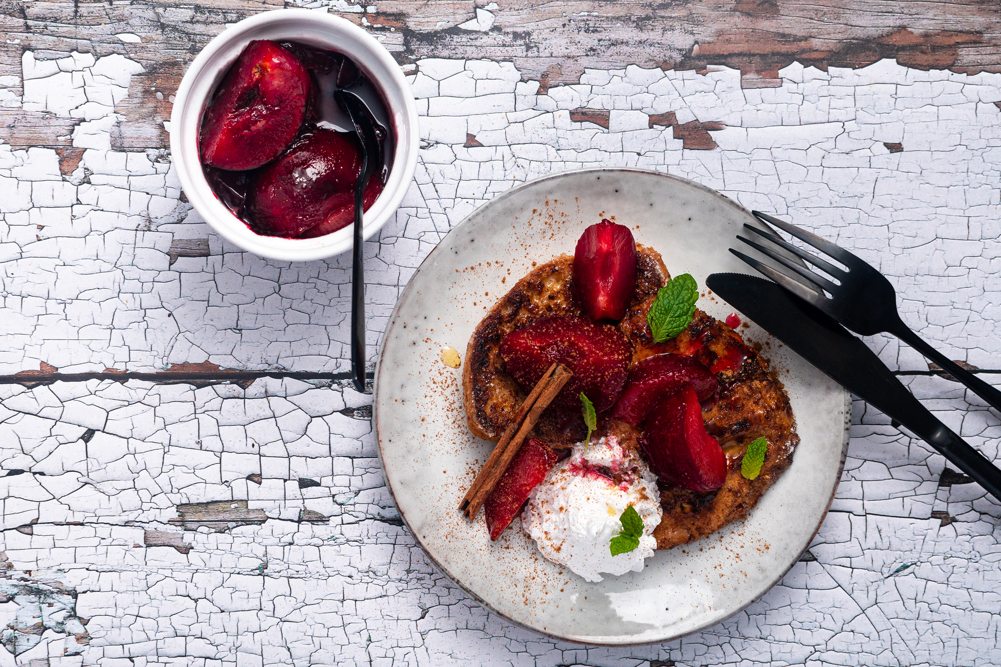 - Zum Schluss die Karamell-Pflaumen auf die French Toasts geben und nach Belieben mit Sahne servieren.