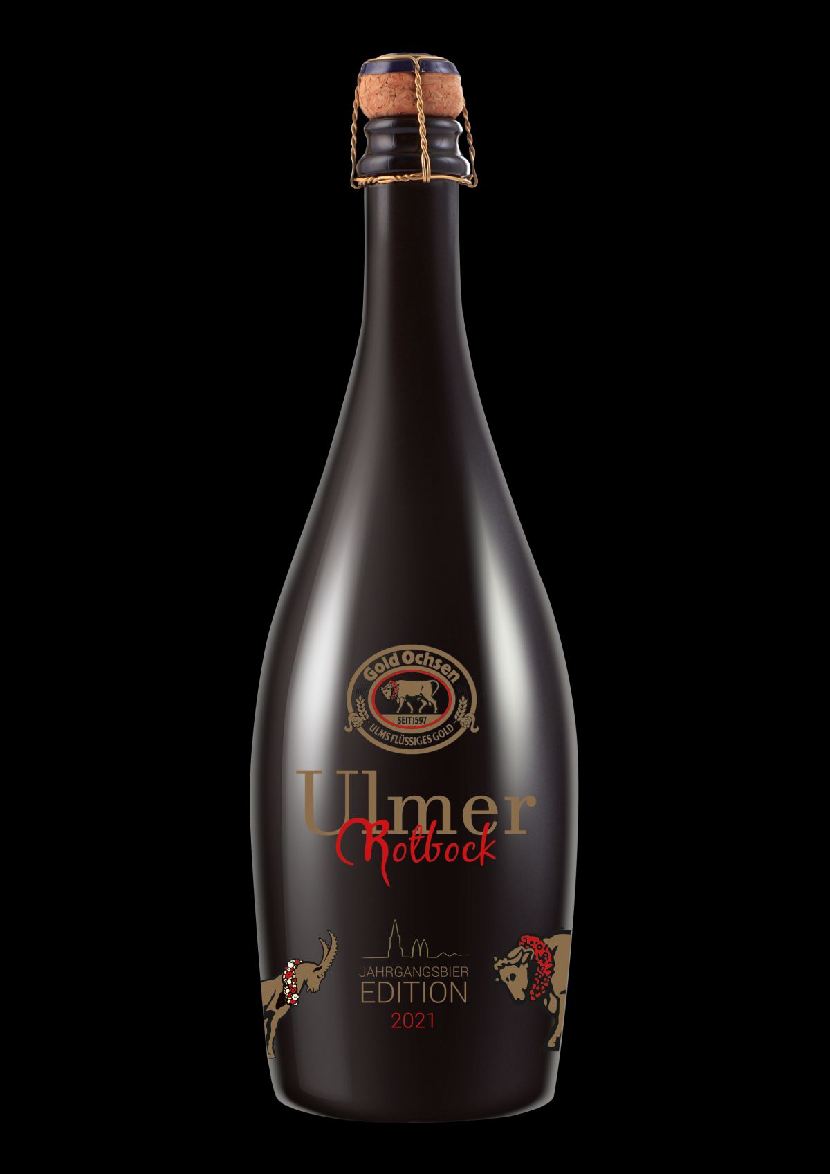 So die Gold Ochsen Geschäftsführerin Ulrike Freund: „Die Interpretation unserer Braumeister als Bockbier führt die Reihe unserer beliebten Jahrgangsbiere optimal fort. Der Gold Ochsen Ulmer Rotbock wird Bierkenner mit seinem markanten, ausbalancierten Geschmack, dem Duft nach Karamell- und Trockenfrüchten sowie dem feinporigen, cremefarbigen Schaumpolster begeistern“. Das Jahrgangsbier 2021 passt wunderbar zu deftigen Fleischgerichten sowie zu pikanten Gemüse- und Käsevariationen. Außerdem lässt sich diese einzigartige Bierspezialität auch ideal als Aperitif genießen. Der in limitierter Auflage von 1.597 – angelehnt an das Gründungsjahr 1597 der Brauerei – per Hand in elegante 0,75-Liter-Flaschen abgefüllte Gold Ochsen Ulmer Rotbock ist im Brauerei Shop, im Ochsen Shop in der Ulmer Innenstadt sowie bundesweit über den Gold Ochsen Online Shop erhältlich.