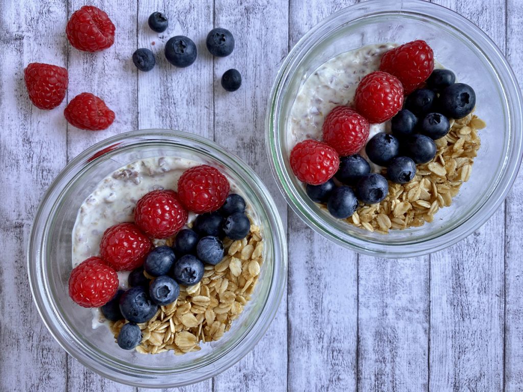 Gut in den Tag starten mit einer leckeren Frühstücksbowl. Denn der fruchtige Vital-Quark mit Leinsamen und gerösteten Haferflocken sorgt für einen extra Energiekick. Leinsamen sind reich an Ballaststoffen sowie pflanzlichen Omega-3-Fettsäuren und können zu einer cholesterinbewussten Ernährung beitragen. Haferflocken enthalten auch einen hohen Gehalt an Ballaststoffen und zudem Hafer-Beta-Glucan. Hafer ist absolut im Trend und sorgt geröstet für einen extra Crunch.