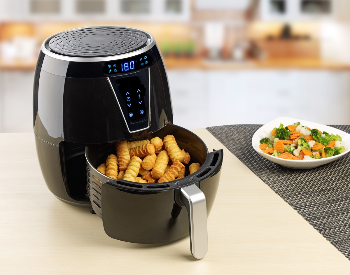 - Heißluft-Fritteuse inklusive Auffang-Behälter, Frittier-Korb und deutscher Anleitung mit Zubereitungstipps