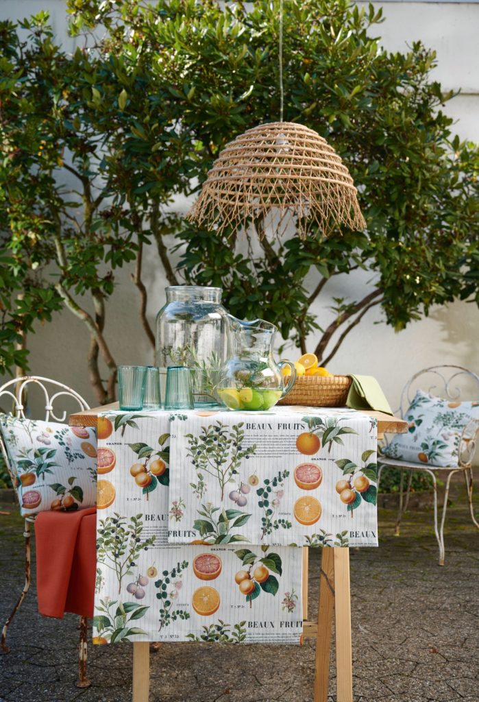 Die ersten wärmeren Tage locken uns auf den Balkon oder in den Garten. Noch schöner wird es mit der hübschen Tischwäsche von Apelt. Die Stoffe sind wetterfest und überstehen einen kurzen Regen. Lassen Sie sich von Zitrusfrucht- und Blumen-Design inspirieren.