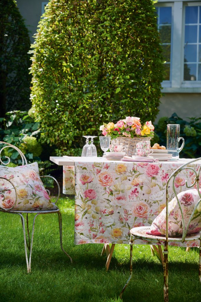 Die Textilien des deutschen Familienunternehmens Apelt bringenden Charme blühender Blumen auf den gedeckten Tisch und ins Interieur. Praktisch und dekorativ sind jetzt wetterfeste Outdoor-Stoffe in heiteren Sommerfarben, denen ein kleiner Sommerregen nichts ausmacht.
