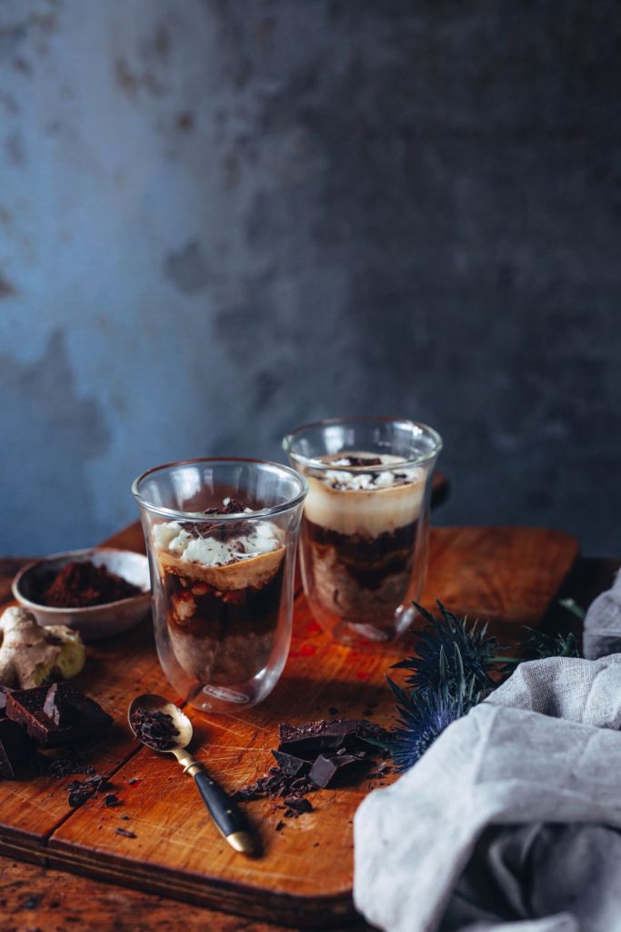 Für einen besonders schokoladigen Geschmack kann frisch geraspelte Schokolade verwendet werden. Außerdem kann der frische Ingwer mit Ingwerpulver ersetzt werden.