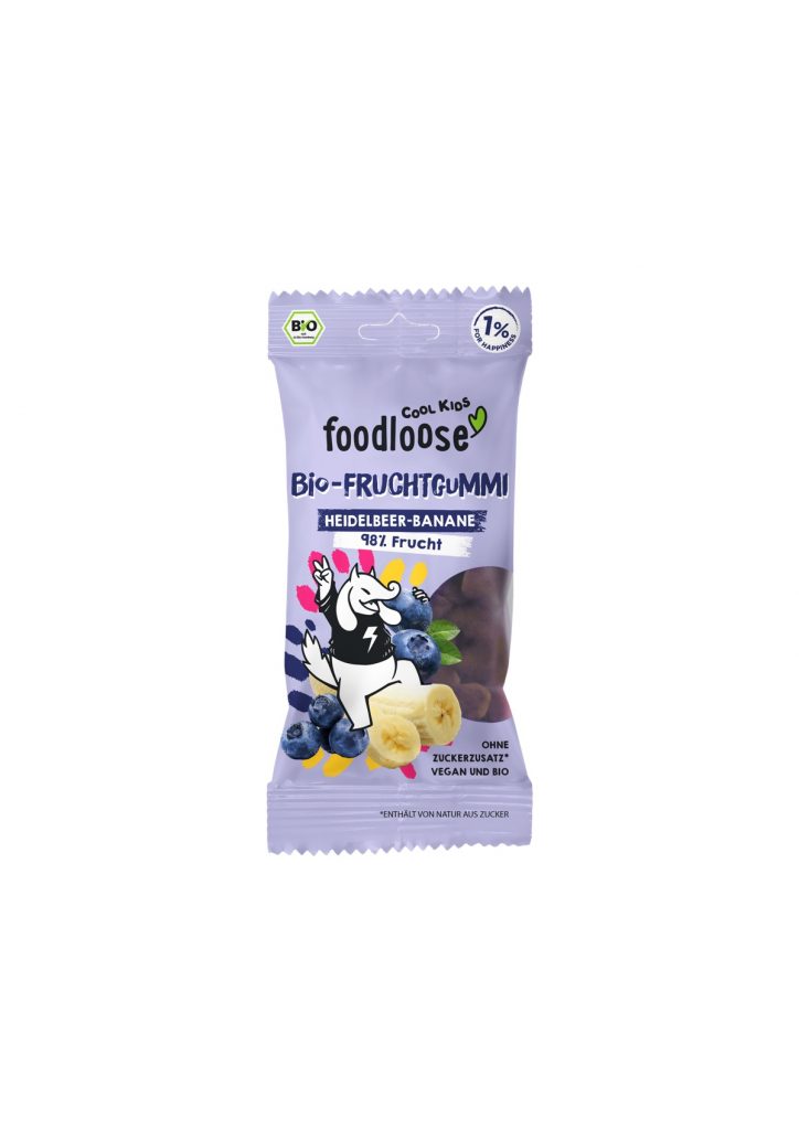Umso mehr freuen sich kleine und große Schleckermäuler, dass es die beliebten Bio-Fruchtgummis von foodloose nun in einer neuen Geschmacksrichtung gibt. Neben Apfel-Himbeere und Apfel-Mango kommt im Oktober nämlich nun die Sorte Heidelbeer-Banane auf den Markt. Eine saftige Geschmacksexplosion aus 98% Frucht. Yummie!