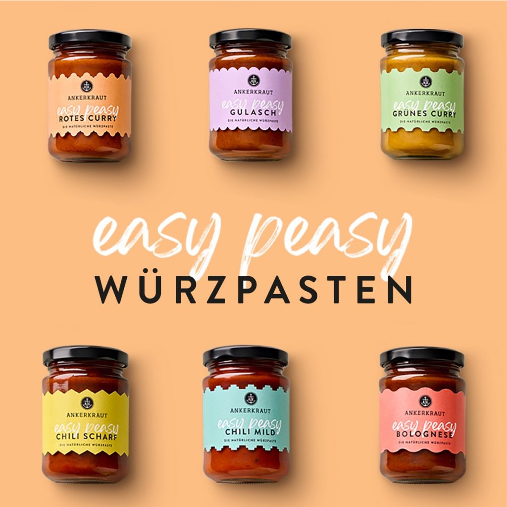 Der Hamburger Gewürzspezialist bietet mit seiner Würzpasten-Serie ab sofort neue Möglichkeiten für kreative Köche. Sechs vegane Pasten mit dem Namen Easy Peasy erlauben es in der Küche schnell Gaumenfreuden zuzubereiten. Die Serie beinhaltet die Geschmacksrichtungen milder und scharfer Chili, sowie Bolognese und Gulasch sowie zwei Curry-Varianten.