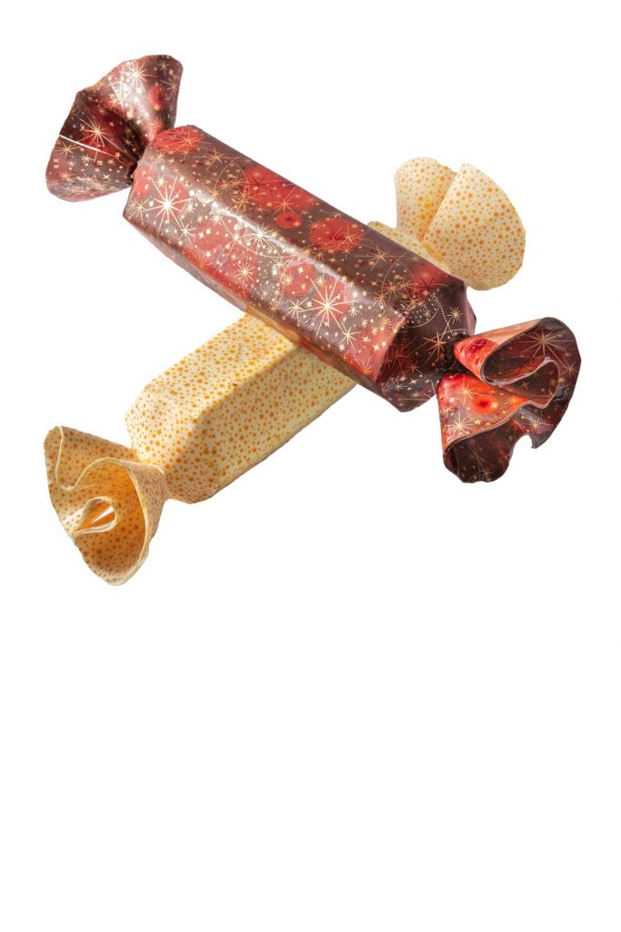 Diese besondere Kreation des Konditors Jérémie Gressier des Fünf-Sterne Terre Blanche Hôtel Spa Golf Resorts in der Nähe von Cannnes in der Provence kombiniert direkt zwei französische Köstlichkeiten. Und zwar Baumkuchen, den „Bûche de Noël“ und die „Papillote“, welches übersetzt Bonbonpapier heißt. Die helle Sorte besteht aus einem Kern aus Mandelkrokant mit Fleur de Sel und einer feinen Schicht aus Marmelade und einer besonderen Mousse, welche schließlich von weißer Schokolade ummantelt wird. Die dunkle Version beinhaltet Kakaonibs, Biskuit und geröstete Kakaobohnen. Umhüllt wird dieser Bûche von 70prozentiger Schokolade.