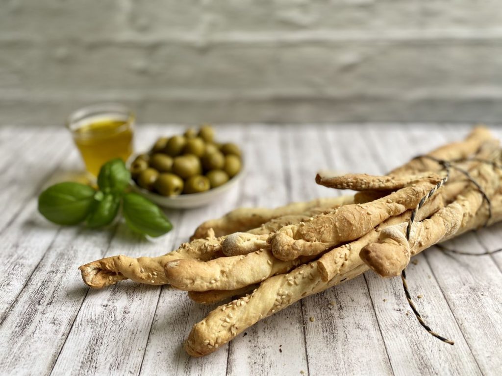 Genießertipp: Die knusprigen Sesam-Grissini schmecken pur, mit cremigem Dip oder zu Käse und Wein.