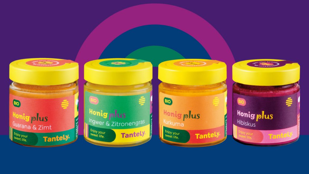 Mit den neuen Honig-Kompositionen verwöhnt die Biomarke TanteLy den Gaumen: Kombiniert mit verschiedenen Superfoods sind die TanteLy „Honige plus“ eine Bereicherung für alle Schleckermäuler. Da kommen Kurkuma, Ingwer und Zitronengras, Guarana und Zimt oder auch Hibiskus ins Spiel. Auch das bunte Design der Gläser bringt Freude auf den Tisch.