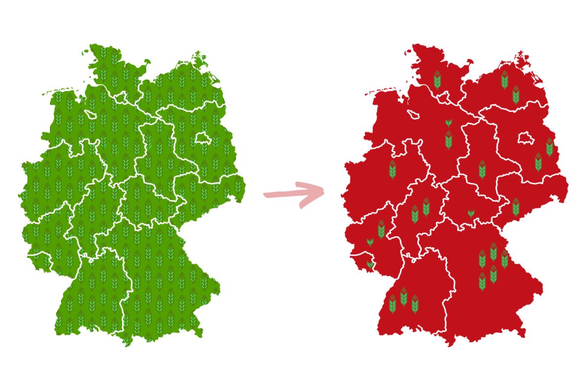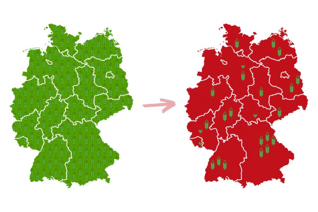 Aktuelle Pläne sehen vor, dass künftig nicht mehr alle Arten von Gentechnik gekennzeichnet werden müssen – sogenannte „Neue Gentechnik“ wie CRISPR/Cas sollen von Kennzeichnung und Risikoprüfung befreit werden. Was das für die Anbauflächen in Deutschland bedeuten würde, veranschaulicht Bioland mit einer Kartendarstellung.