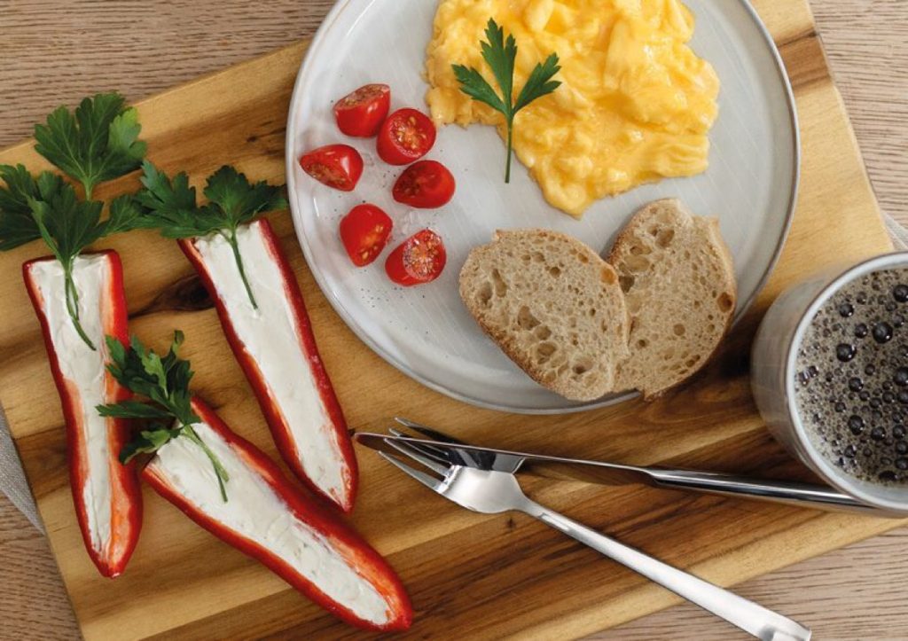 Die Zubereitung des leif Rühreis und den leckeren gefüllten Paprika-Möhrchen ist unkompliziert und erfordert lediglich 10 Minuten. Für das Rührei zunächst etwas Öl in einer beschichteten Pfanne erwärmen und das leif-Rührei, je nach gewünschter Portionsgröße, in die Pfanne gießen. „Das Rührei dann bei mittlerer Hitze stocken lassen und die Eimasse hin und wieder mit einem Pfannenwender in die Mitte der Pfanne schieben“, erklärt Klaus-Werner Wagner von der Gourmetkochschule. Je nach Wunsch kann auch hier etwas Petersilie über das fertige Rührei gestreut werden. Anschließend die Spitzpaprikas waschen, von Strunk und Kernen befreien und der Länge nach aufschneiden. Die halbierten Paprikas gleichmäßig mit dem Frischkäse befüllen und jeweils einen Stängel Petersilie oben hineindrücken, um das Karottengrün perfekt nachzuempfinden. Fertig sind Rührei und Ostermöhrchen, die mit frischem Basilikum und fruchtigen Tomaten garniert werden können. Dies sorgt nicht nur für Sättigung, sondern auch für gemeinsame Genussmomente – und das ganz ohne großen Aufwand. Der optimale Start in die Osterfeiertage!