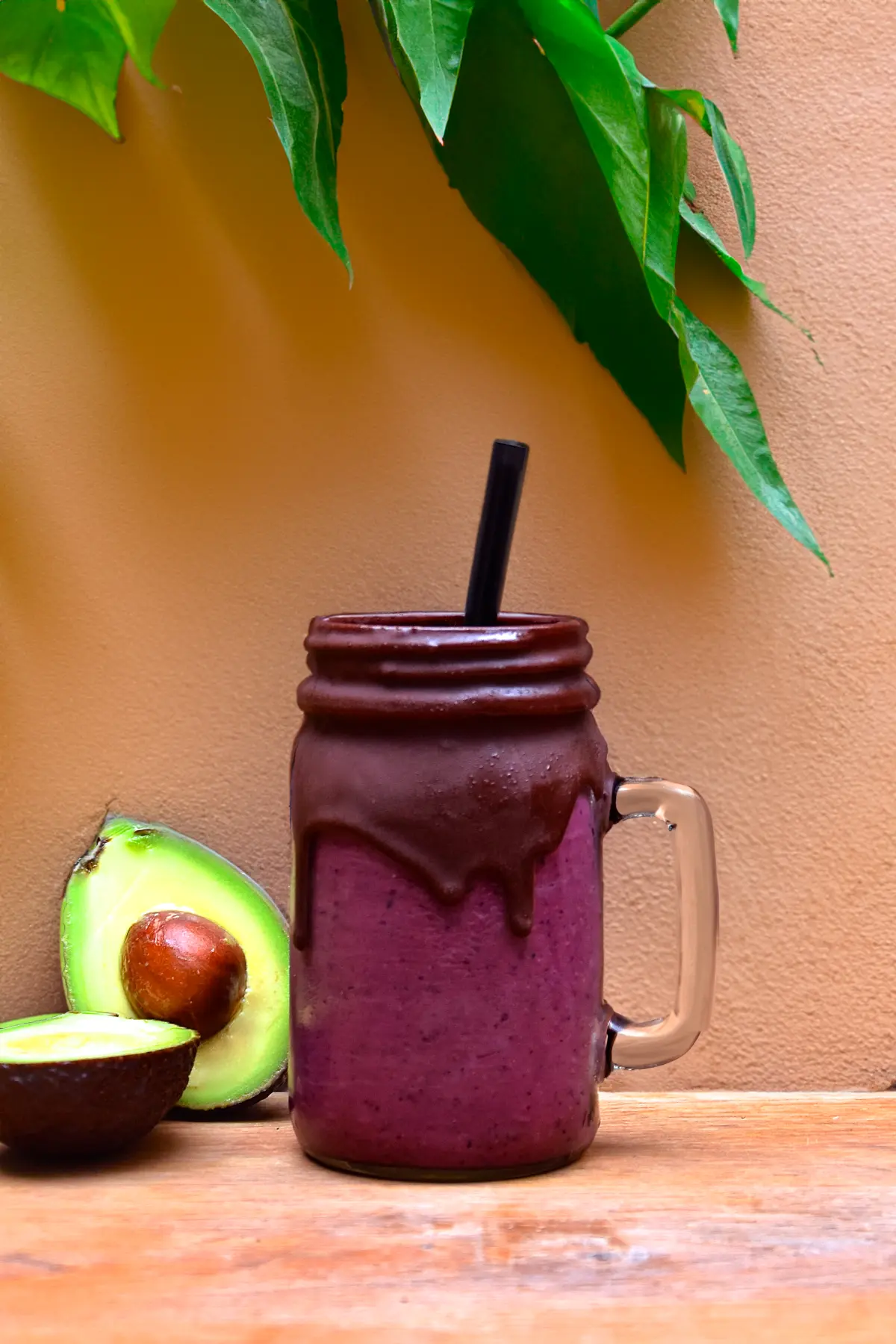 Die World Avocado Organization hat uns dieses Rezept für den legendären Super-Smoothie zukommen lassen. Die Kombination aus den verschiedenen Zutaten machen diesen Drink zu einer gehaltvollen Mahlzeit. Gefrorene Himbeeren und Heidelbeeren geben diesem Drink die schrille Farbe. Die Zutaten sind Haferflocken, Avocado, Chia- und Hanfsamen sowie Datteln, Heidelbeeren und Himbeeren.