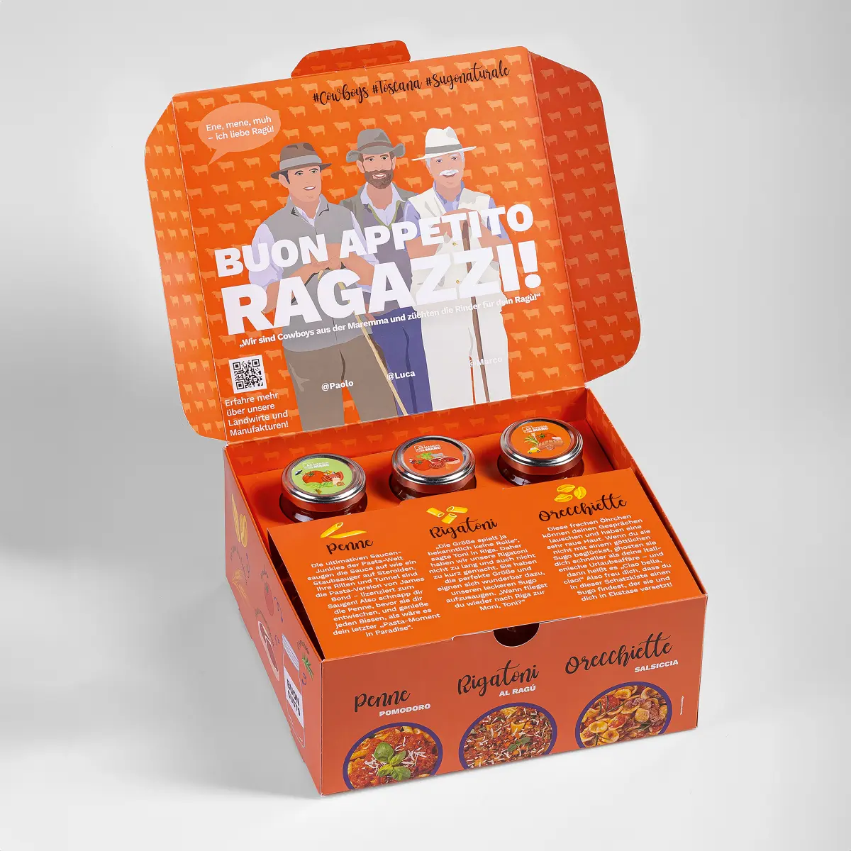 Dabei sind alle Produkte in den Pastaboxen von MangiaMarc aus natürlichen Zutaten hergestellt. Denn „Industriekram“, wie Marc Faber es ausdrückt, kommt bei ihm nicht auf den Tisch. „Durch unser Natürlichkeitsversprechen können die Käufer:innen sicher sein, dass alle Nudeln und Soßen frei von künstlichen Zusatzstoffen, Geschmacksverstärkern und synthetischen Konservierungsstoffen sind“, erklärt der Geschäftsführer. Dementsprechend kurz ist die Zutatenliste. Der Klassiker „Tomatensoße mit Basilikum“ besteht aus 91 % Tomatenfruchtfleisch, extra nativem Olivenöl, Basilikum, Knoblauch, Salz und Agavendicksaft. Die nach italienischen Original-Rezepten zubereiteten Sugos enthalten ausschließlich selbst angebautes Gemüse und Fleisch aus eigener Zucht von Landwirten aus der Toskana sowie Fisch von Fischern aus der Region. Die frische Pasta, hergestellt in Apulien aus 100 % italienischem Hartweizengrieß und Wasser, wird unter Schutzatmosphäre haltbar gemacht und muss nicht gekühlt werden.