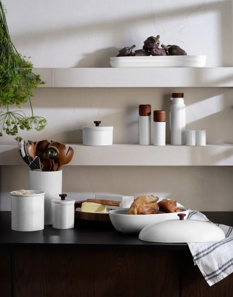 Kitchen Art bietet die unverzichtbaren Basics, die in keiner modernen Küche fehlen dürfen: Ein Sortiment, das nicht nur perfekt auf die Anforderungen zeitgemäßen Kochens und Küchenstylings abgestimmt ist, sondern auch auf dem gedeckten Tisch eine elegante Figur macht. Die klaren Formen, die durch ein feines Rillenrelief akzentuiert werden, verleihen den Produkten der Kitchen Art-Serie in der neuen, glänzend weißen Variante einen modernen und einzigartigen Charakter. ASA Selection erweitert die Kollektion um zahlreiche praktische und zugleich ansprechende Neuheiten. Dazu gehören unter anderem der unverzichtbare Brottopf, luftdicht schließende Aufbewahrungsdosen, ein Brotschneidebrett, Weinkühler und eine ovale Schale. Mit den neuen Farboptionen Black, Brown und White fügt sich Kitchen Art harmonisch in jedes Wohnambiente ein. Für Fans von Kombinationen sind die Kitchen Art Produkte aufgrund ihrer einheitlichen Rillenstruktur die ideale Ergänzung zur erfolgreichen Japandi Teeserie.