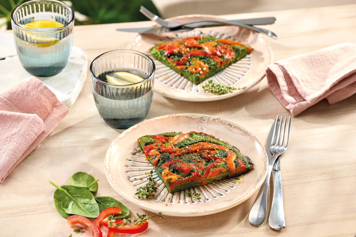 Grüne Frittata mit Babyspinat, Bärlauch und gegrillter Paprika