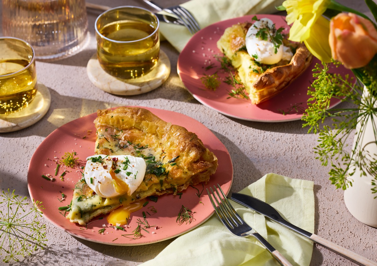 Herzhaft, aromatisch und dennoch unkompliziert: Dieses Dutch Baby aus dem Ofen verbindet die luftige Leichtigkeit eines Ofenpfannkuchens mit frischen Kräutern, würzigem Gruyère und perfekt pochierten Eiern. Das Gericht eignet sich ideal als besonderer Brunch, als leichtes Mittagessen oder als raffinierte Mahlzeit für Gäste. Die Kombination aus knusprigem Rand, saftigem Inneren und cremigem Eigelb macht das Rezept zu einem ausgewogenen Ofengericht mit hohem Genussfaktor.