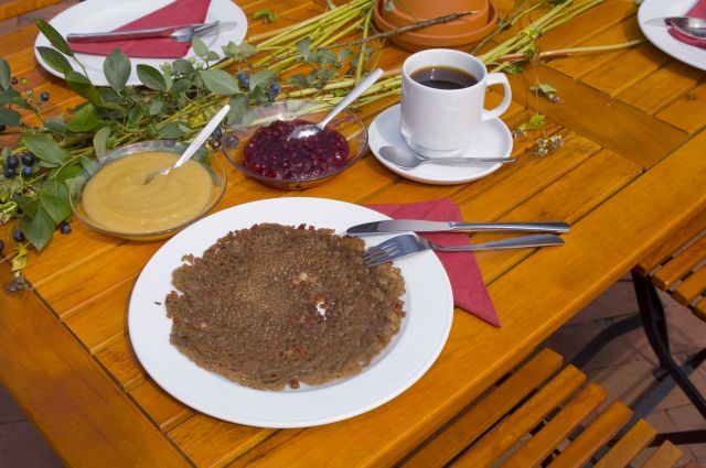 Pumpernickel-Torte aus Roggen, der in der 200 Jahre alten Mühle direkt über den Köpfen der Gäste gemahlen wird, gibt es in Enkings Mühle in Emsbüren für 2,40 Euro. Das gesunde Pumpernickelbrot ohne jegliche Zusatzstoffe wird 24 Stunden lang bei niedriger Temperatur gebacken (500 Gramm für 1,50 Euro) und ist so begehrt, dass es an Kunden in ganz Deutschland per Post verschickt wird. www.enking.de