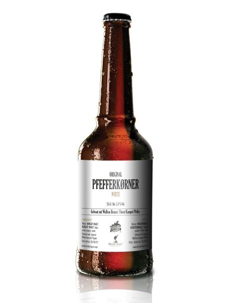 Der „Original Pfefferkørner White“ ist das erste Pfefferbier aus dem Hause Hennes’ Finest und passt mit seinem erfrischend würzigen Geschmack perfekt in die anstehende Grillsaison. Das Kölner Unternehmen Hennes‘ Finest ist auf den Import des kambodschanischen Kampot Pfeffers spezialisiert und präsentierte heute erstmals im Rahmen der Parktage auf Schloss Hugenpoet in Essen seine neueste Produktentwicklung: „Pfefferkørner White“. Das obergärige Weizenbier besitzt eine Stammwürze von 12,8 Prozent, einen Alkoholgehalt von 5,3 Prozent und wird mit einem Sud aus weißem Kampot Pfeffer „gewürzt“. Die ausgefallene Bierkomposition wurde von Hennes’ Finest in Zusammenarbeit mit „Freigeist Bierkultur“ entwickelt.