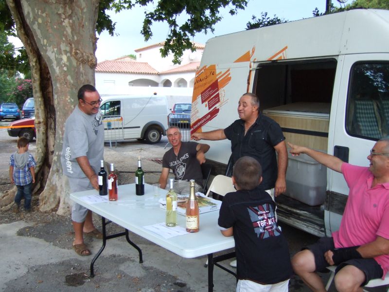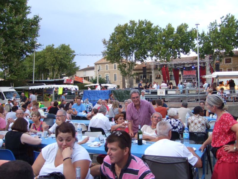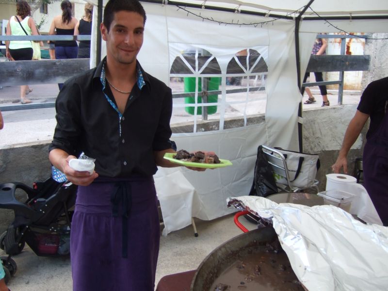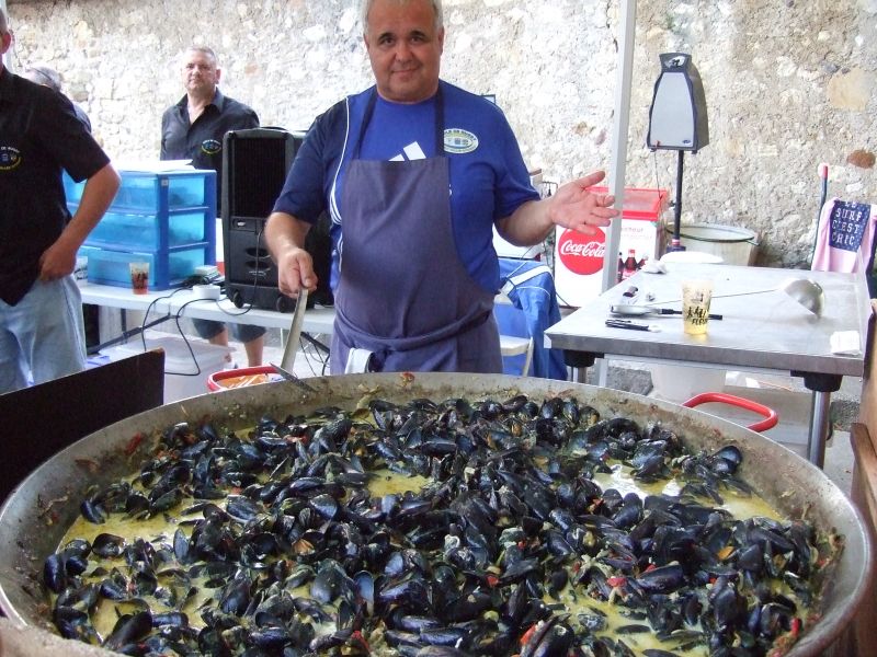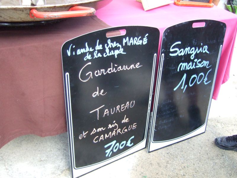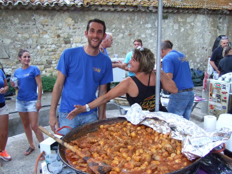Wir haben unseren Urlaub in Südfrankreich sehr genossen. Die schöne Landschaft im Hinterland, nette Örtchen und Sehenswürdigkeiten haben unseren Urlaub kurzweilig und abwechlungsreich gestaltet. Von unserer Unterkunft im Ferienhaus auf dem Weingut Château Pech-Celeyran aus hatten wir es nicht weit ins Hinterland sowie zu verschiedenen Stränden am Meer. Ein wunderschöner Abschluß war das Wein-Dorffest in Salles d’Audes, unserem Dörfchen. Hier wurden regionale Spezialitäten in großen Paella-Pfannen gekocht und dargeboten. Von Muscheln, Paella, Hühnchenpfanne bis hin zur Gardienne de Taureau mit regionalem Stierfleisch und Reis aus der Camargue gab es viele Köstlichkeiten, die wir – fast – alle probiert und für sehr lecker befunden haben. Dazu Wein direkt vom Winzer, wobei sich die Herren (siehe unten) nicht ganz einig waren, wer diesen Wein produziert hat. Schauen Sie sich die Bilder an und sehen Sie, welch Lebensfreude hier vermittelt wird.