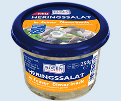Rügen Feinkost hat uns zwei Variationen vom Hering geschickt: Die Heringshappen und den Heringssalat. Beide Produkte sind MSC zertifikiert und dürfen somit auf unseren Tisch. Sonst hätte unser neunjähriger Sohn rebelliert, der ganz genau darauf achtet, dass in unserer Familie nur Fisch aus kontrolliertem Fischfang verzehrt wird.