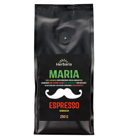 Frisch von der Biofach flatterte uns eine Probe des Espressos Maria von Herbaria ins Haus.