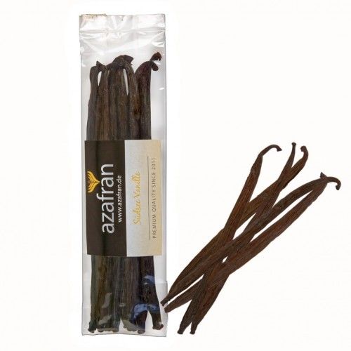 Azafran bietet als Alternative Südsee Vanille an. Diese Schoten stammen aus Papua-Neuguinea und gehören zu der weltweit am begehrtesten und teuersten Tahiti-Vanilleschotenarten. Die Südsee Vanille ist dabei etwas fester und dünner als das Original aus Tahiti. Sie zeichnet sich aber dennoch durch ihre Dicke (gegenüber Bourbon Vanilleschoten) und ihrem einzigartigen würzigen und blumigen „Tahiti-Aroma“ aus.