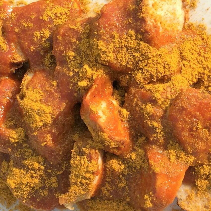 Die Soße „Pottfeuers Currytunke“ von Bosfood: Fruchtig, nicht zu süß. Nicht zu flüssige Konsistenz. Gute Kombination aus Süße und Schärfe