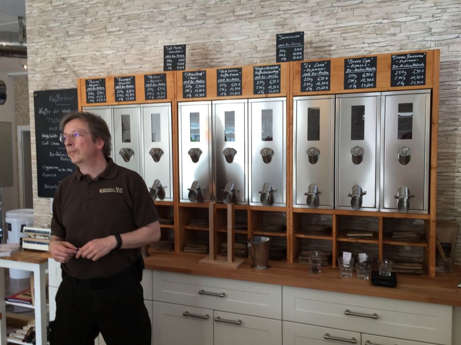 Er bietet in seinem Ladenlokal auch Kaffeeseminare mit und ohne Röstung an. Ausser der eigenen Kafferöstungen hat er Nivona-Kaffee-Vollautomaten, Filter, Frenchpress und Mahlmaschinen im Angebot.